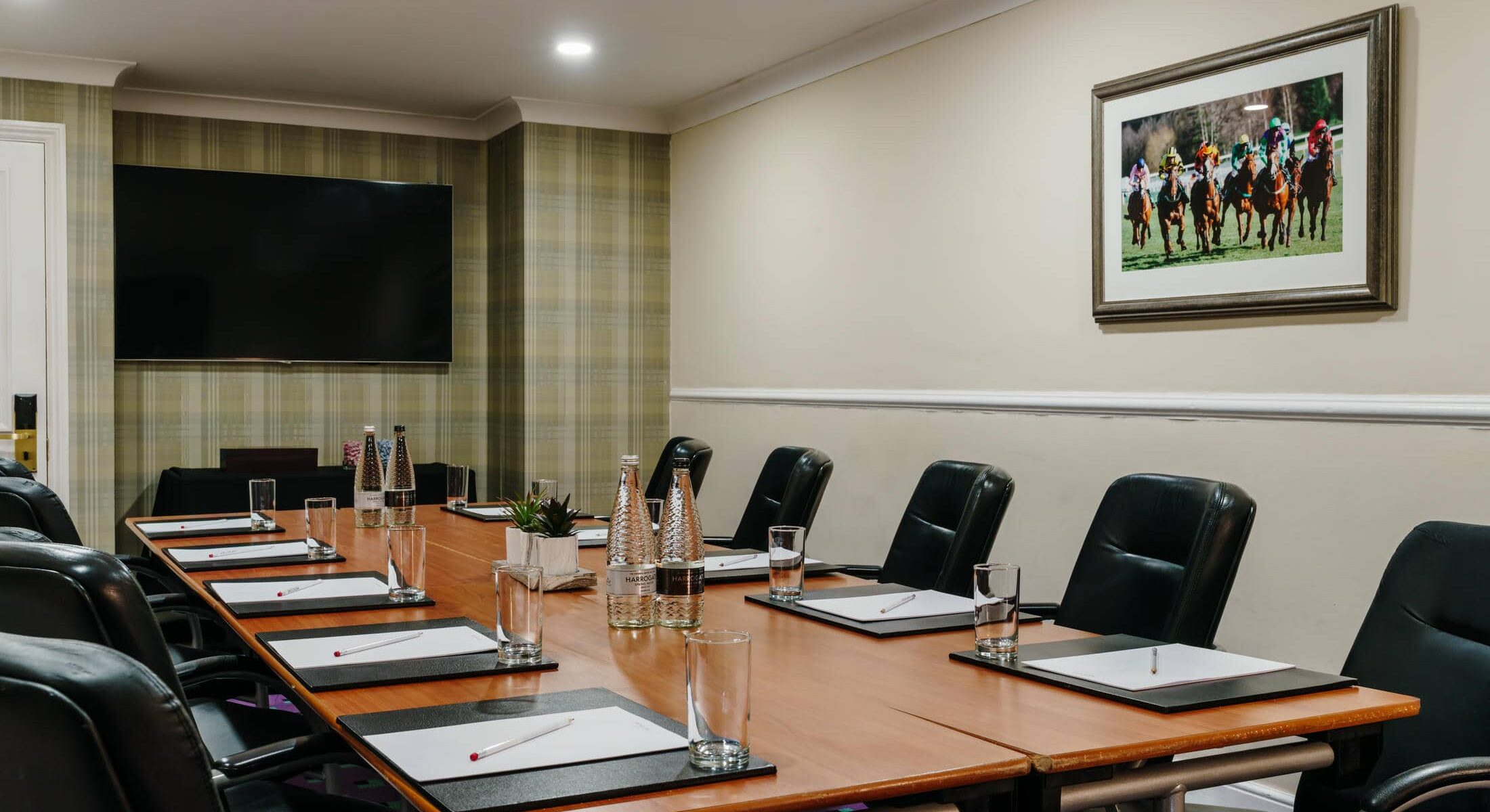 The Jockey Club provides a private and professional setting for executive meetings, interviews and small group discussions. Featuring a dedicated boardroom layout with comfortable seating for up to 12 delegates, the room is designed to support focused conversation and effective decision-making. Its welcoming yet business-focused atmosphere makes it ideal for leadership meetings, confidential interviews or client consultations. The Jockey Club offers a quiet, well-presented space that allows meetings to run smoothly and efficiently.