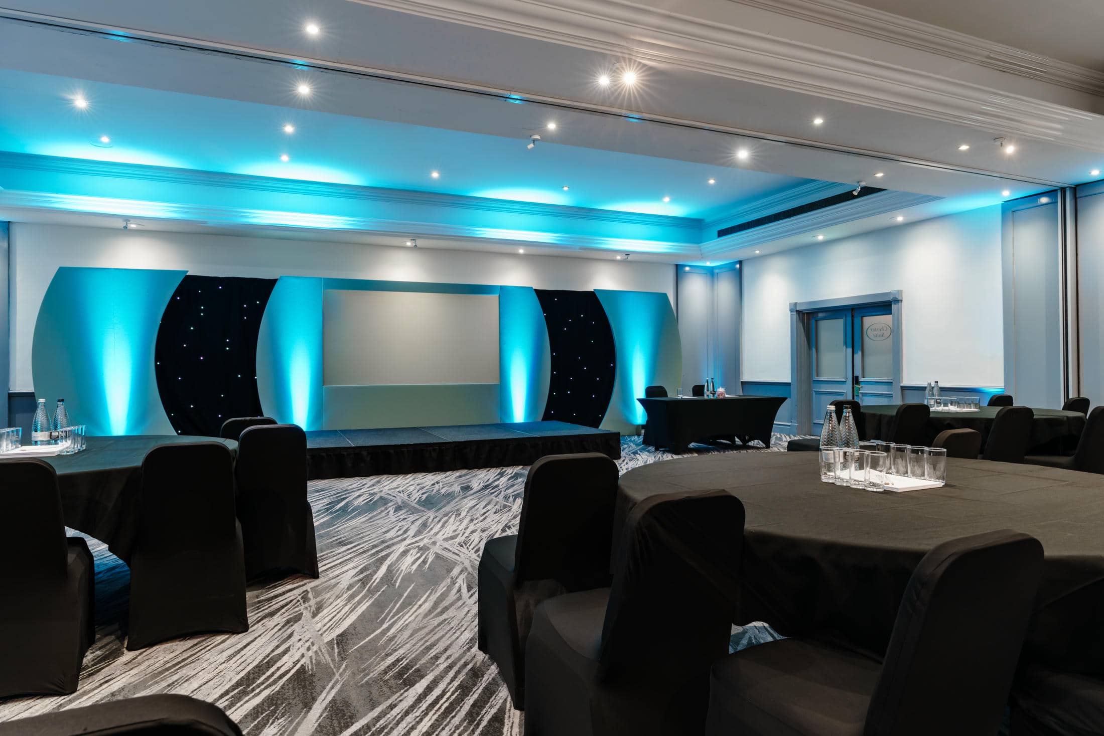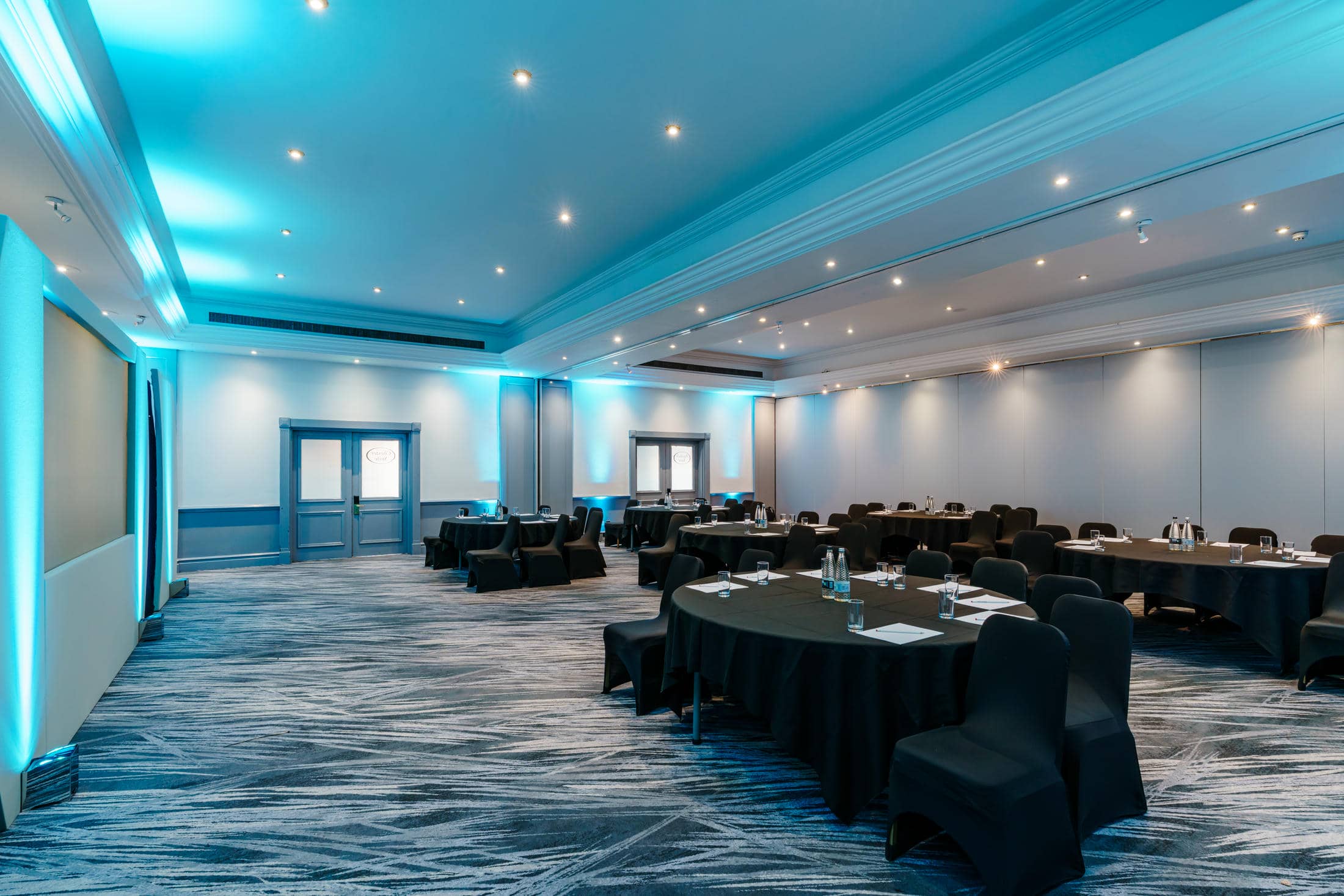 The Racecourse Suite is a versatile, fully equipped space ideal for meetings, conferences, and special events. It can be divided into two or three sections — The Aintree, Haydock, and Chester Suites — offering flexible configurations to ensure the space can be tailored to suit your event needs.