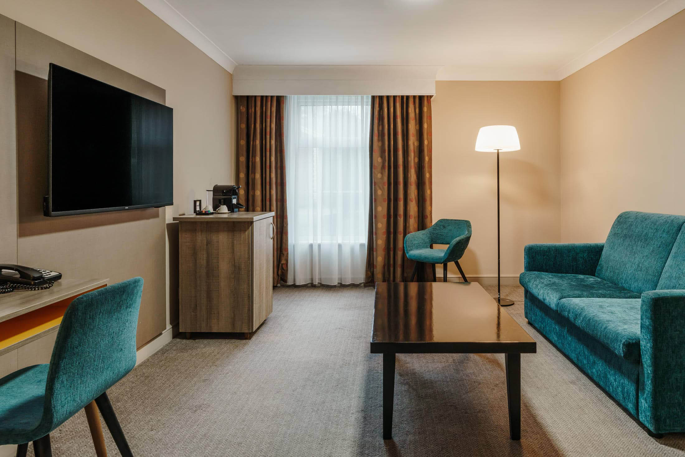 The Junior Suite at Mercure Haydock Park Hotel offers a spacious and welcoming environment for guests seeking extra comfort and flexibility during their stay. Designed with additional living space, this suite provides an ideal balance between relaxation and practicality. Whether visiting for a special occasion, a longer stay or simply enjoying extra room to unwind, the Junior Suite offers a calm and refined setting. Thoughtful design, modern amenities and a relaxed atmosphere ensure guests can enjoy a comfortable and memorable stay in the heart of the North West.