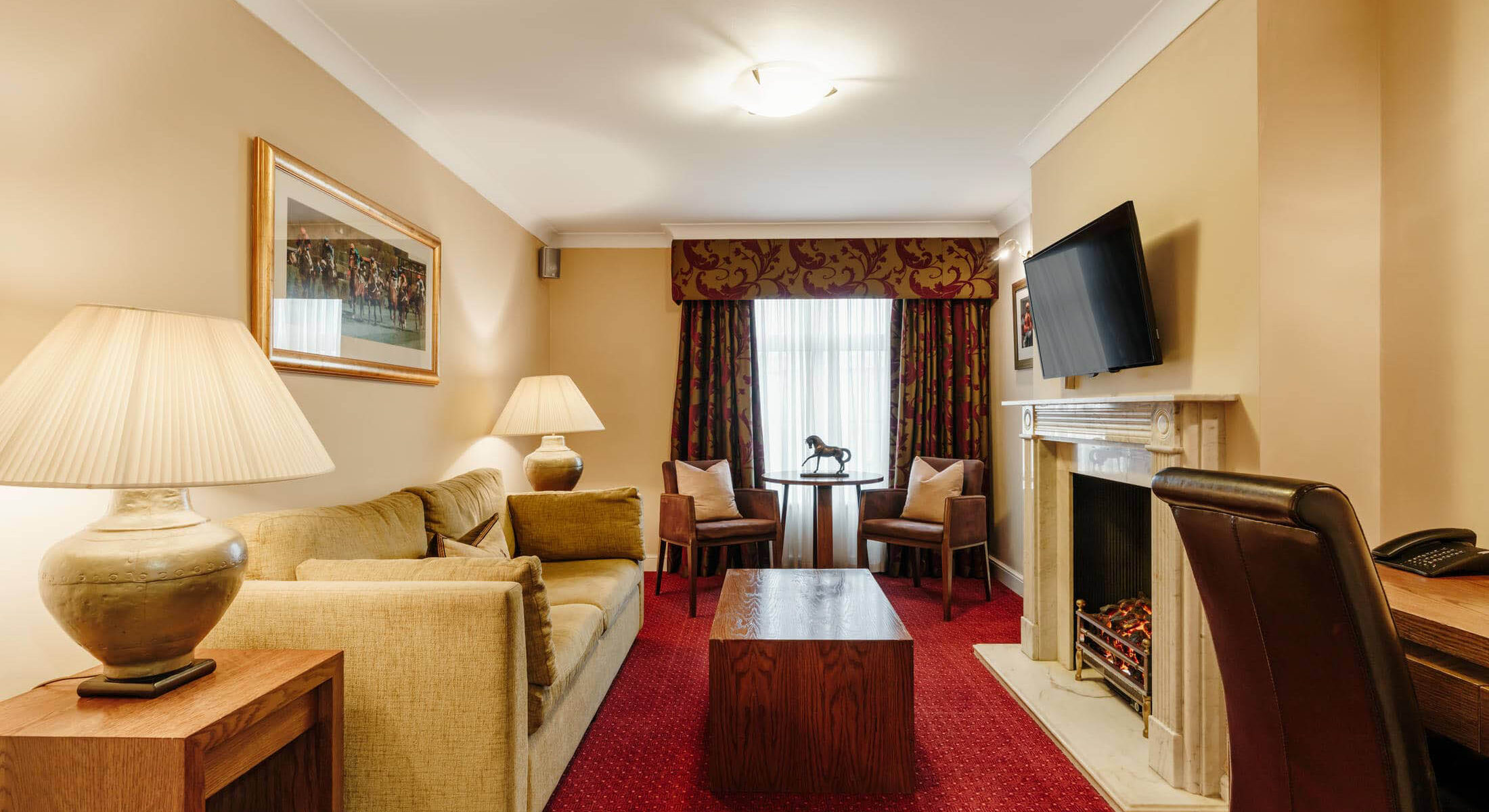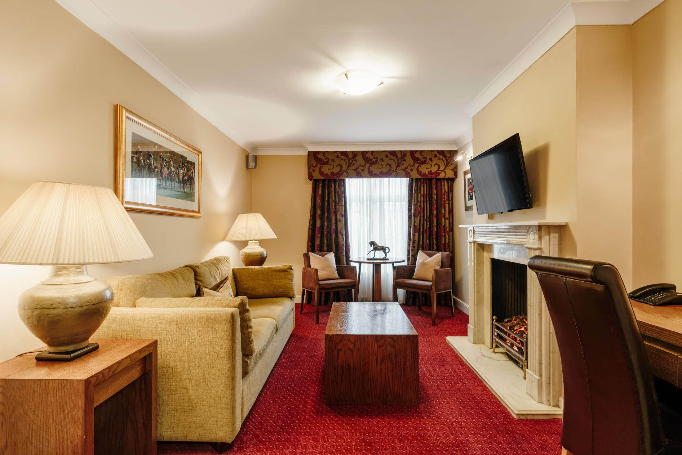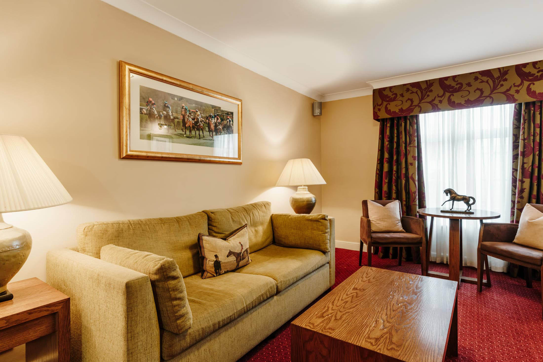 The King Suite at Mercure Haydock Park Hotel offers the highest level of space, comfort and refinement for guests seeking an exceptional stay. Designed for privacy and indulgence, the suite features generous living areas, a luxurious king-size bedroom and direct access to an outdoor patio area, ideal for relaxing in a private setting. The spacious luxury bathroom includes a walk-in shower and a separate jacuzzi bath, creating a true sense of escape. Perfect for special occasions, longer stays or those seeking extra comfort, the King Suite delivers a truly memorable experience in the heart of the North West.