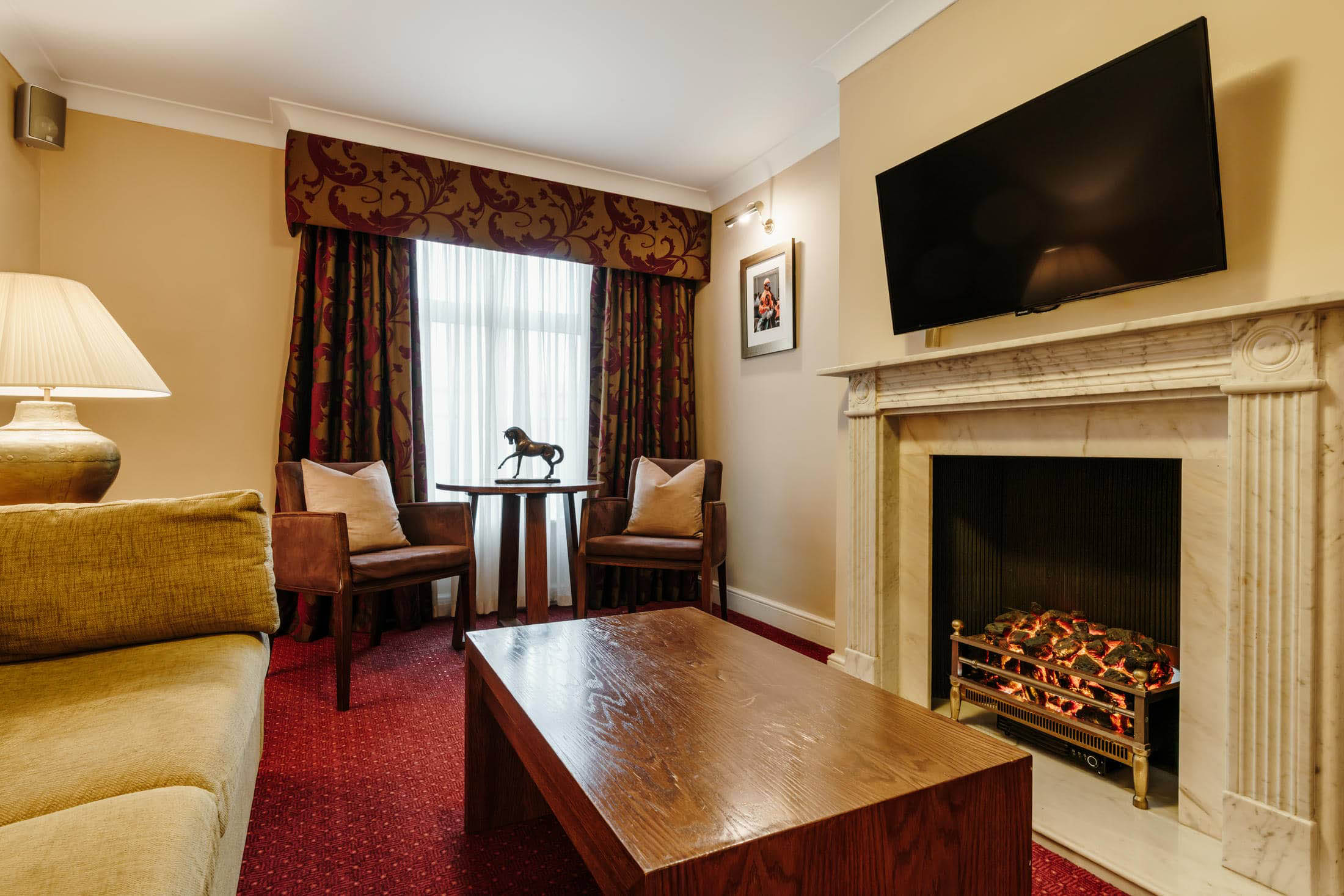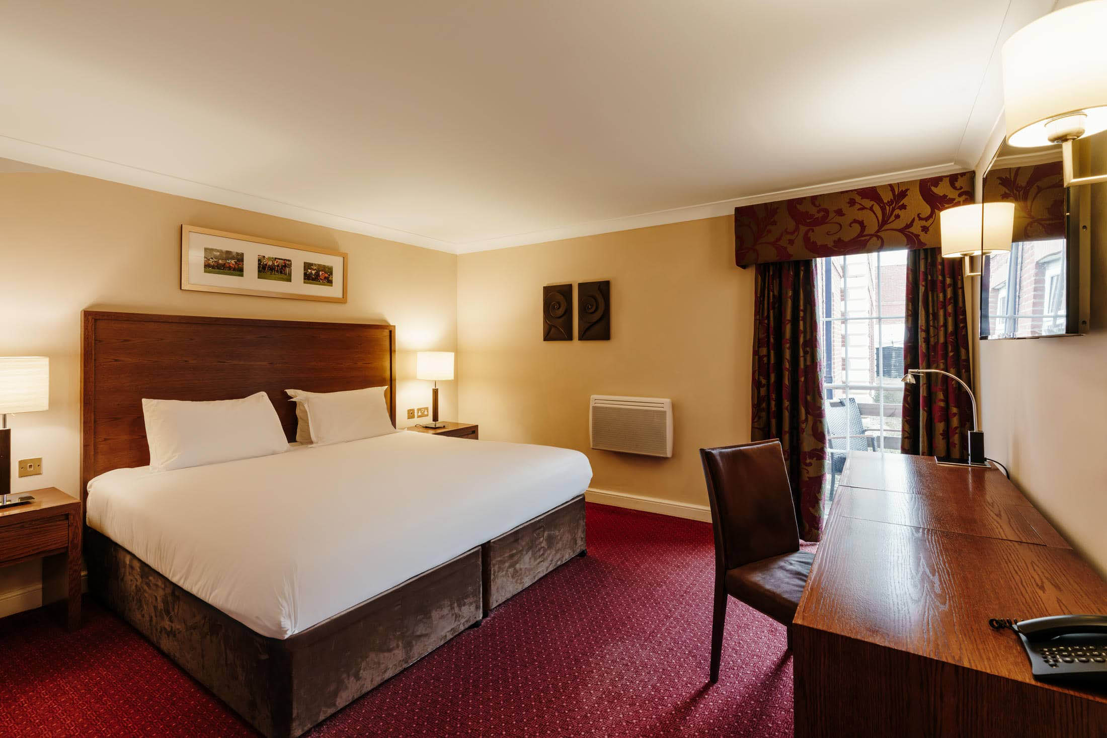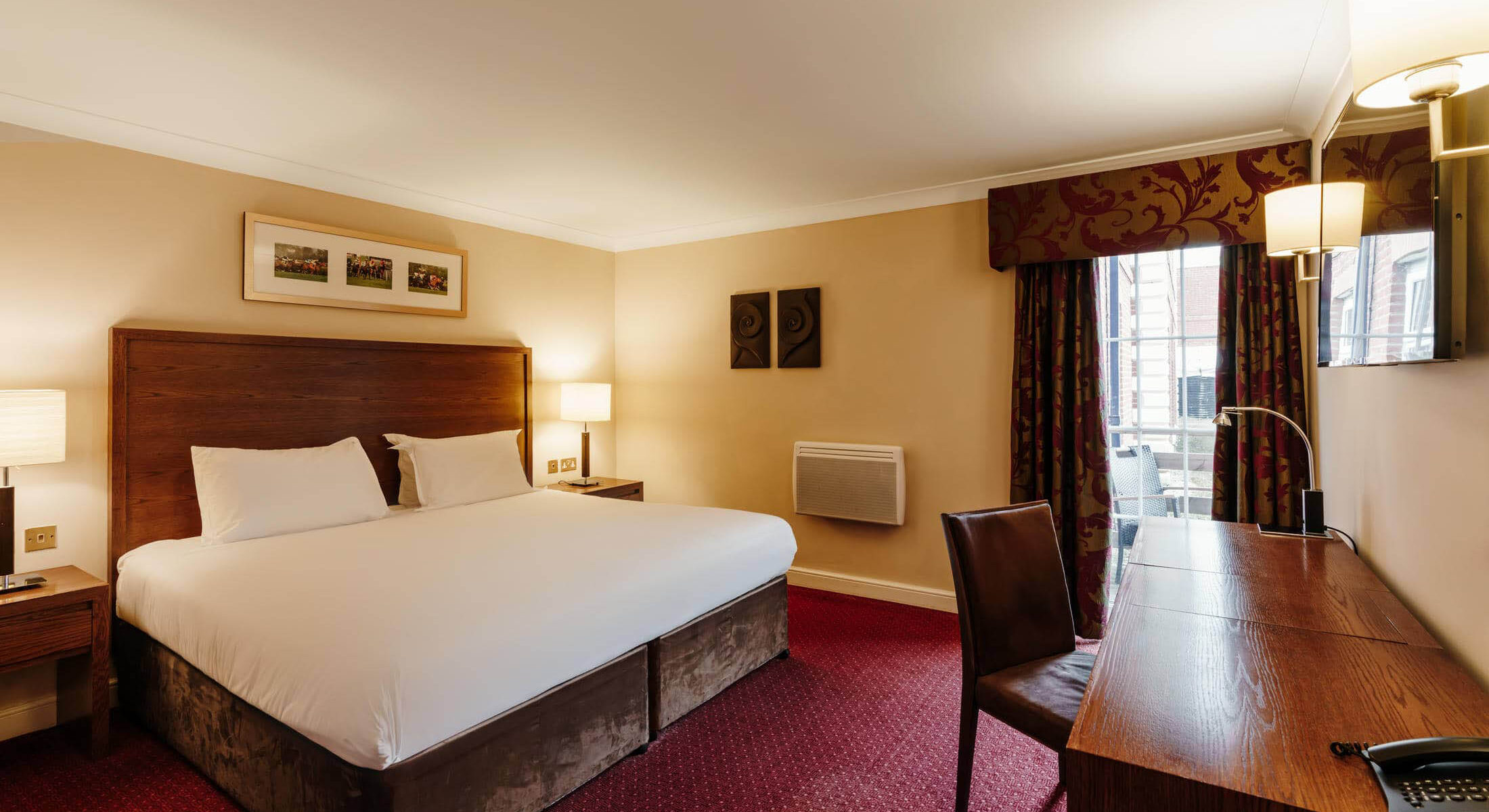 The King Suite at Mercure Haydock Park Hotel offers the highest level of space, comfort and refinement for guests seeking an exceptional stay. Designed for privacy and indulgence, the suite features generous living areas, a luxurious king-size bedroom and direct access to an outdoor patio area, ideal for relaxing in a private setting. The spacious luxury bathroom includes a walk-in shower and a separate jacuzzi bath, creating a true sense of escape. Perfect for special occasions, longer stays or those seeking extra comfort, the King Suite delivers a truly memorable experience in the heart of the North West.